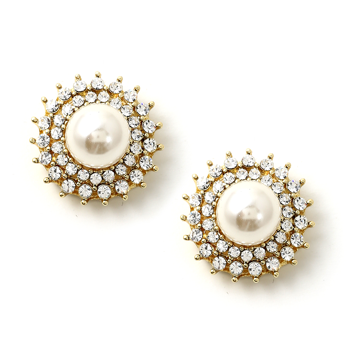 Gold Crystal Rhinestone in Sunflower Shape with Cream Pearl Center Earrings
