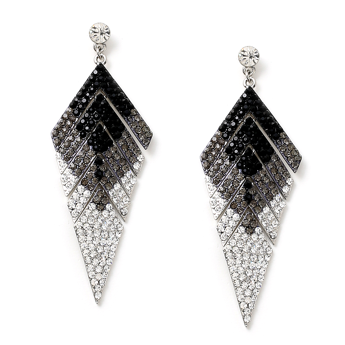 Silver Crystal, Black Diamond and Jet Rhinestones in Arrowhead Shape Earrings