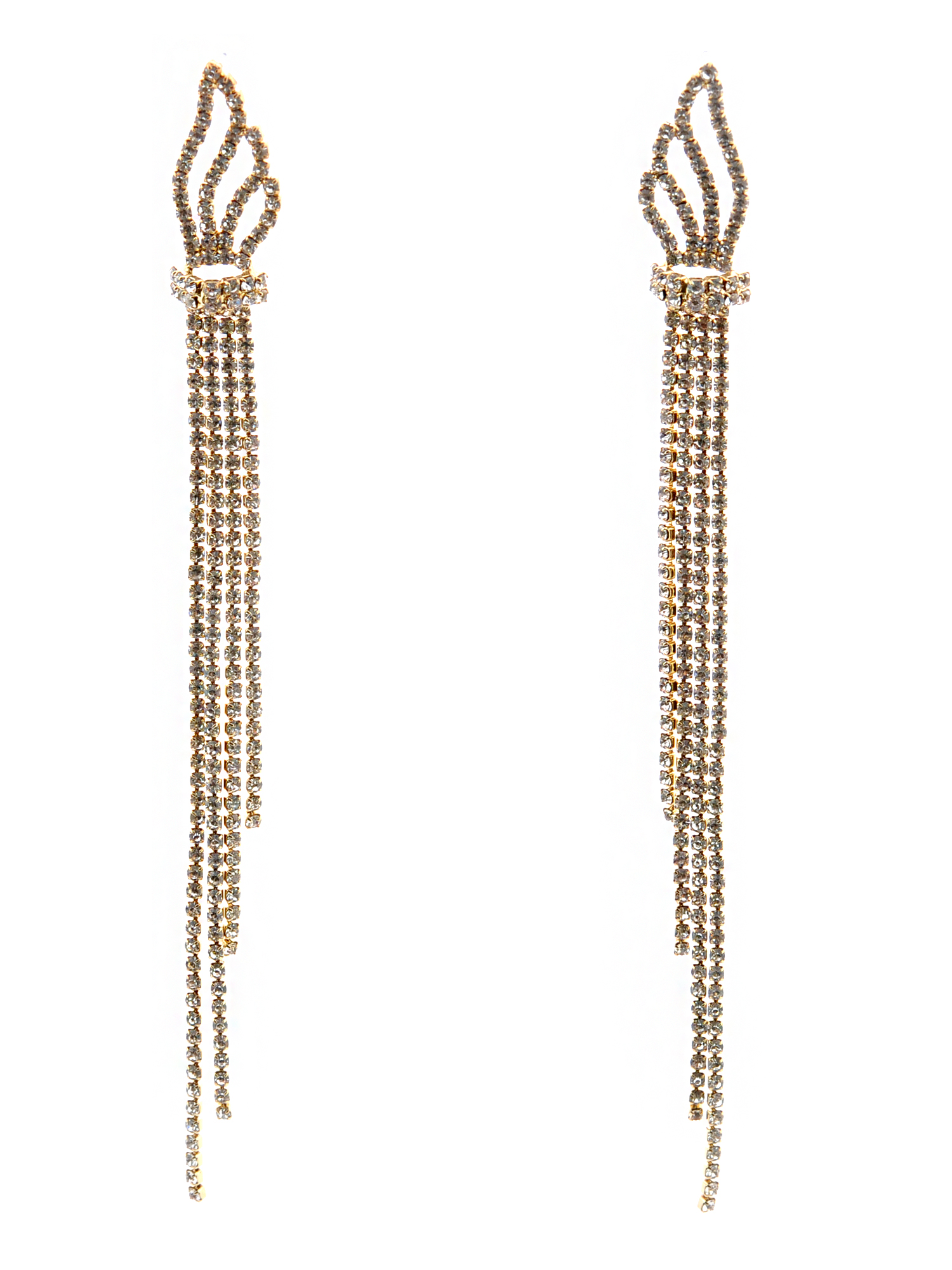 Gold Crystal Rhinestone Long 4 Strands with Torch Flame Top Dangle Earrings