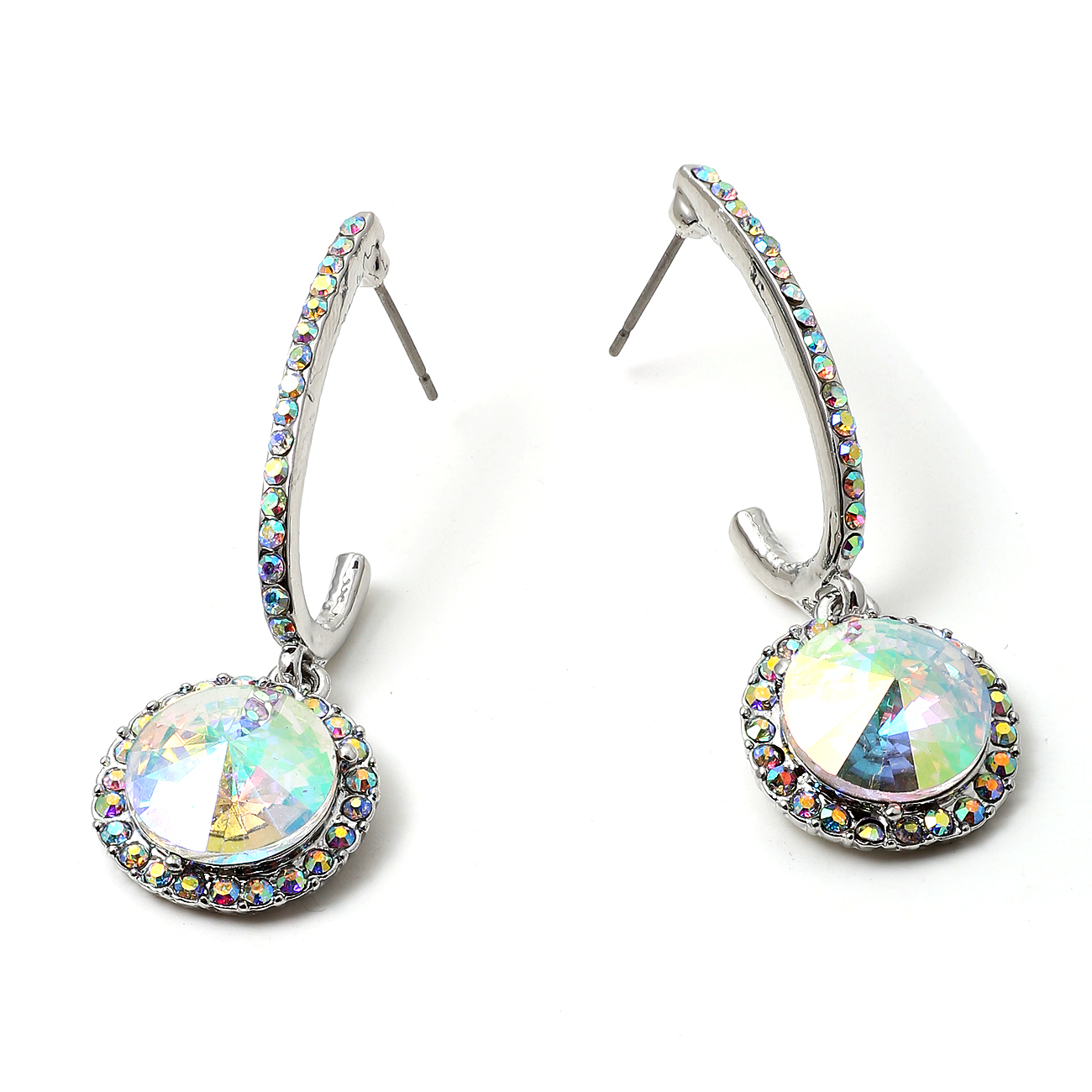 Silver Aurora Borealis Rhinestone in J Hook with Dangle Aurora Borealis Stone Earrings