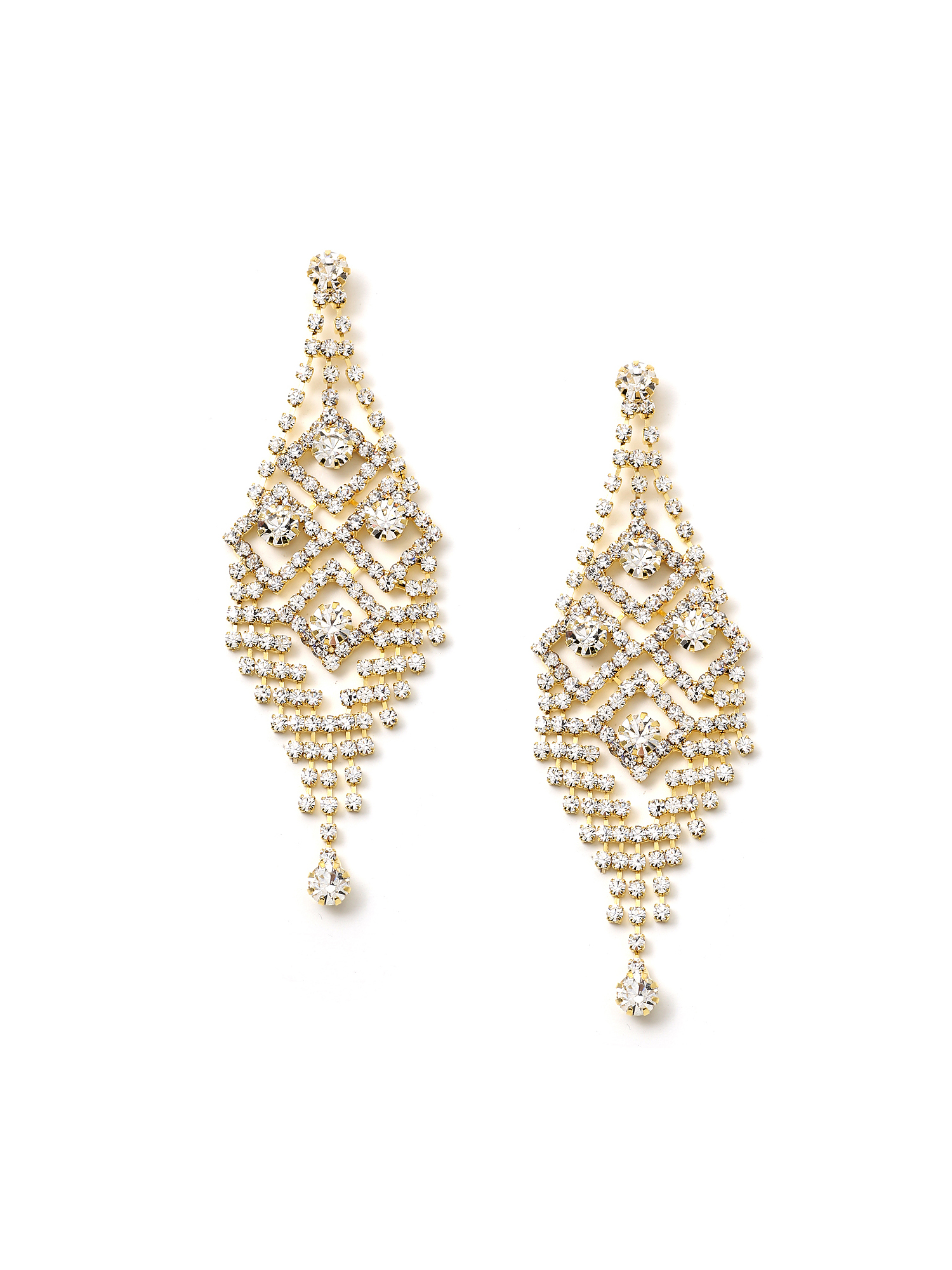 Gold Crystal Rhinestone Art Deco Dangle Earrings
