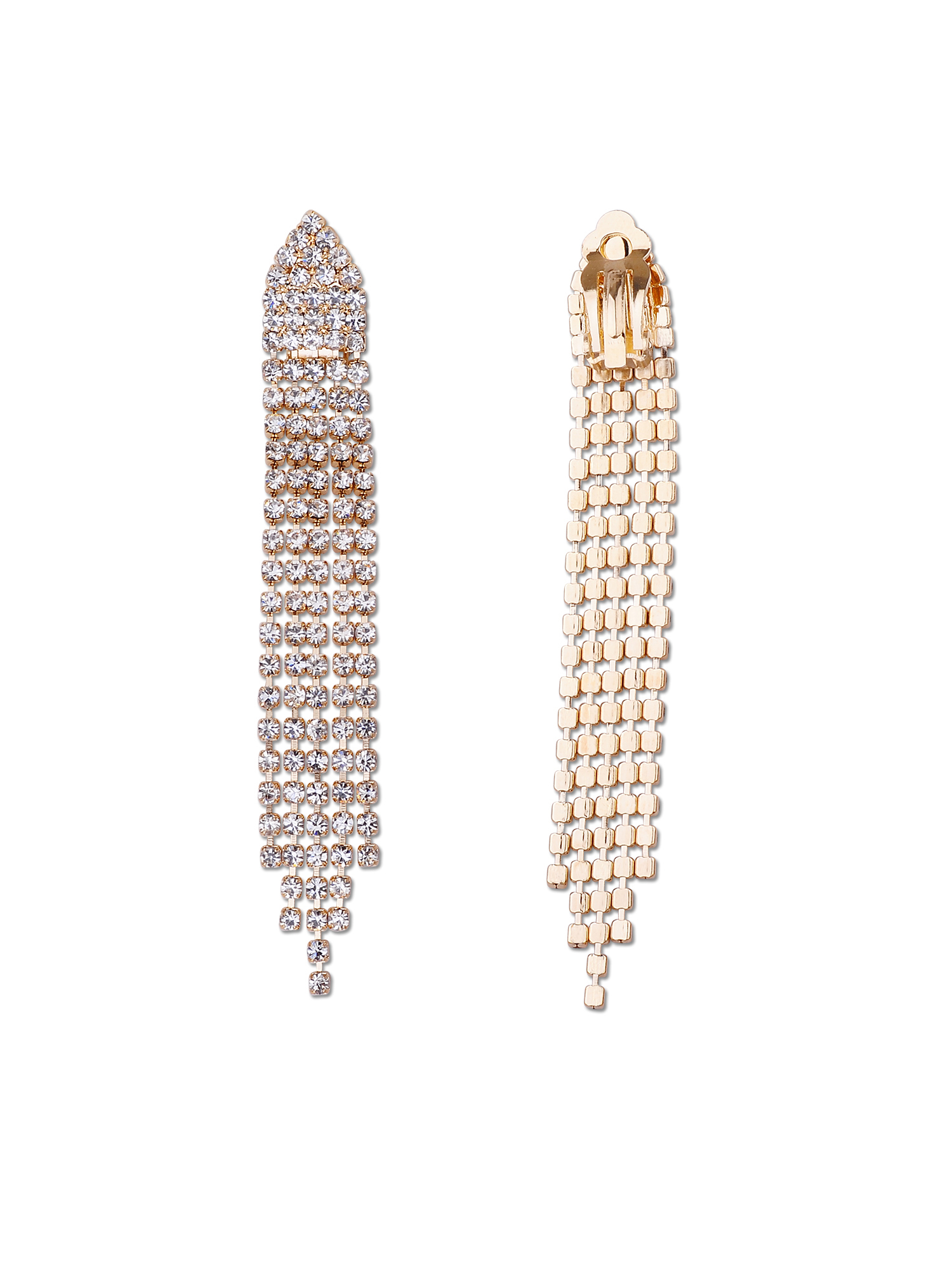 Bridal Fashion Jewelry Earrings Gold Crystal Chandelier Clip On Earring