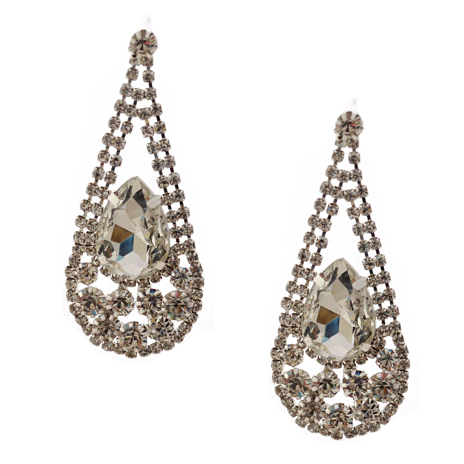 Wedding Earrings Silver Crystal Long Tear Drop Earrings