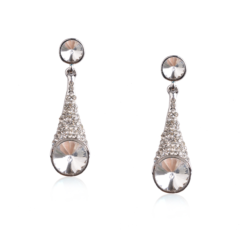 Bridal Earrings Rhodium Crystal Post With Two Stones Dangle Earrings