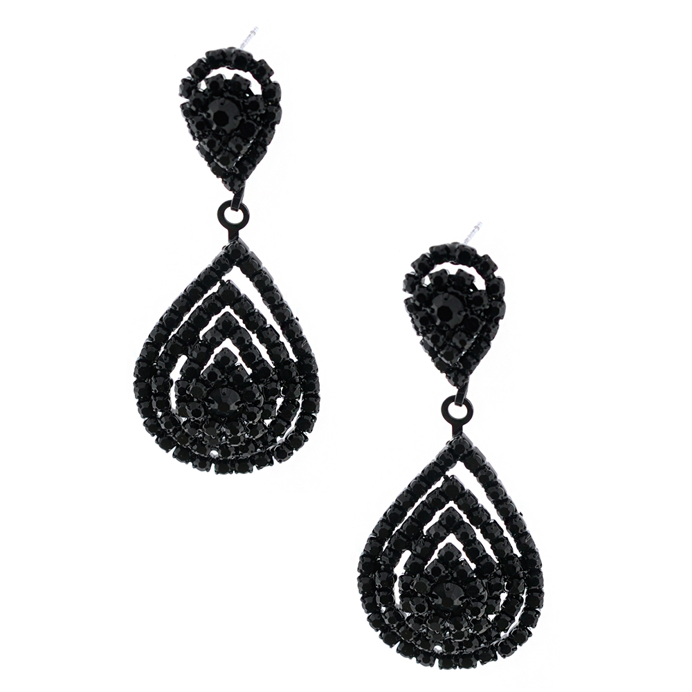 Wedding Earrings Black Jet Rhinestone Teardrop Formation Dangle Earrings
