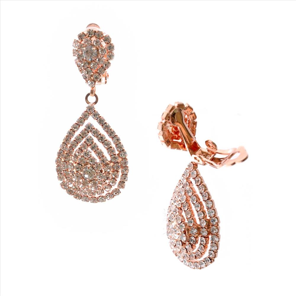 Wedding Earrings Rose Gold Plating Teardrop Dangle Clip Earrings