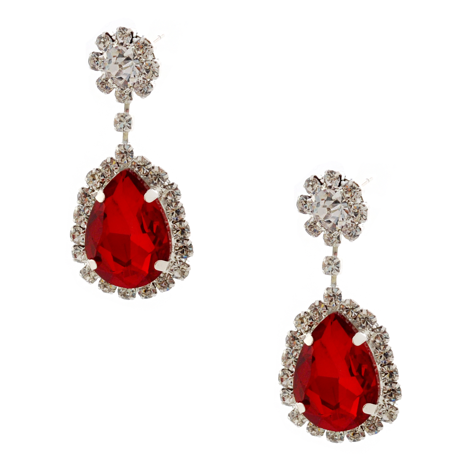 Wedding Earrings Silver Light Siam Rhinestone Tear Drop Earrings
