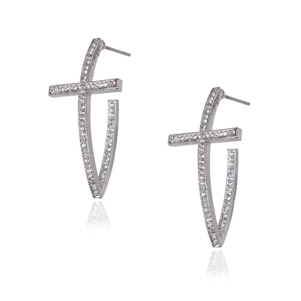 Bridal Jewelry Rhodium Crystal Rhinestone Silver Earrings