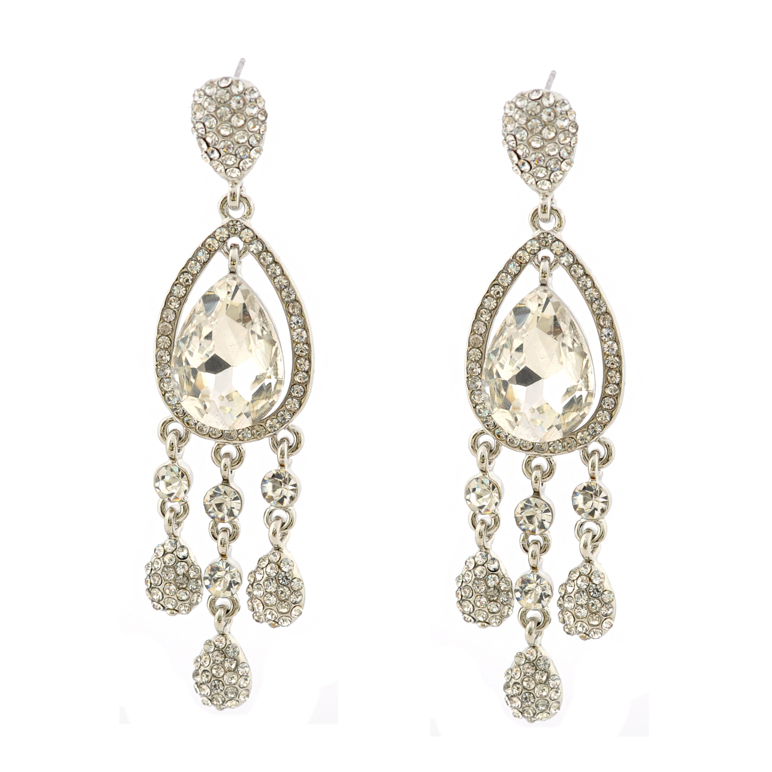 Rhodium Plated Wedding Earrings Silver Teardrop Dangle Earrings
