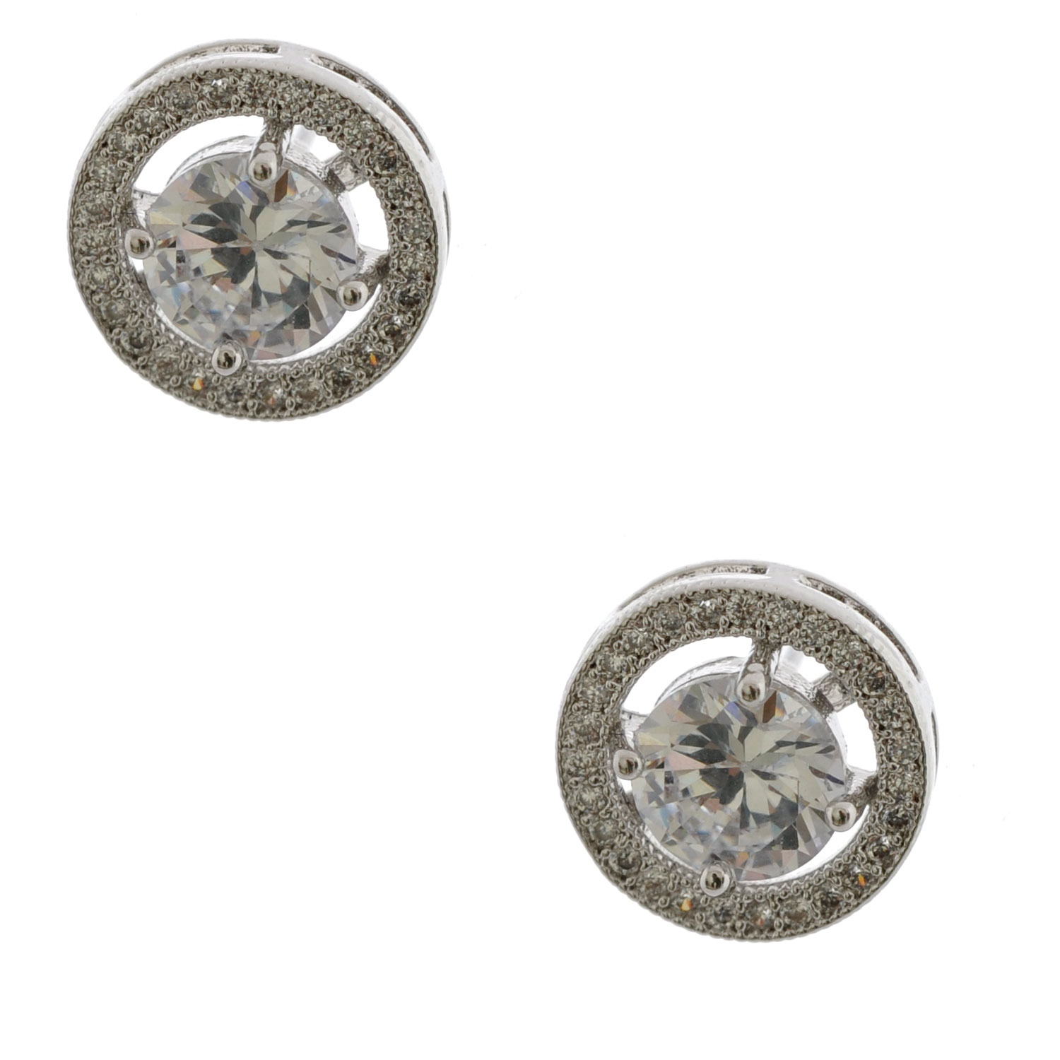 Wedding Earrings Cubic Zirconia Silver Plating Round Crystal Stud Earrings
