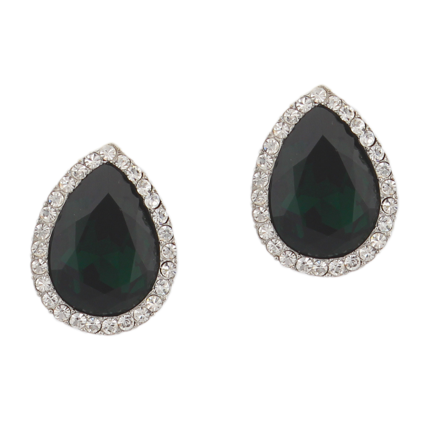 Wedding Earrings Rhodium Emerald Green Oval Stud Earrings