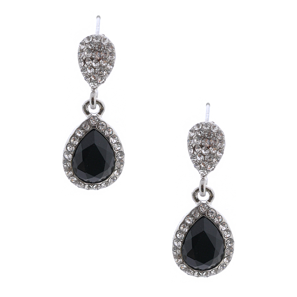 Fashion Earrings Silver Plating Jet Rhinestone Dangle Earrings