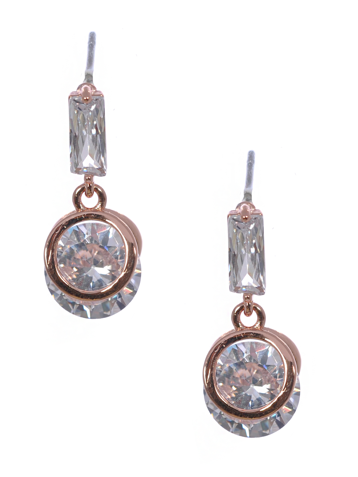 (43423-600) Fashion Earrings Rose Gold Plating Circle Small Dangle Earrings