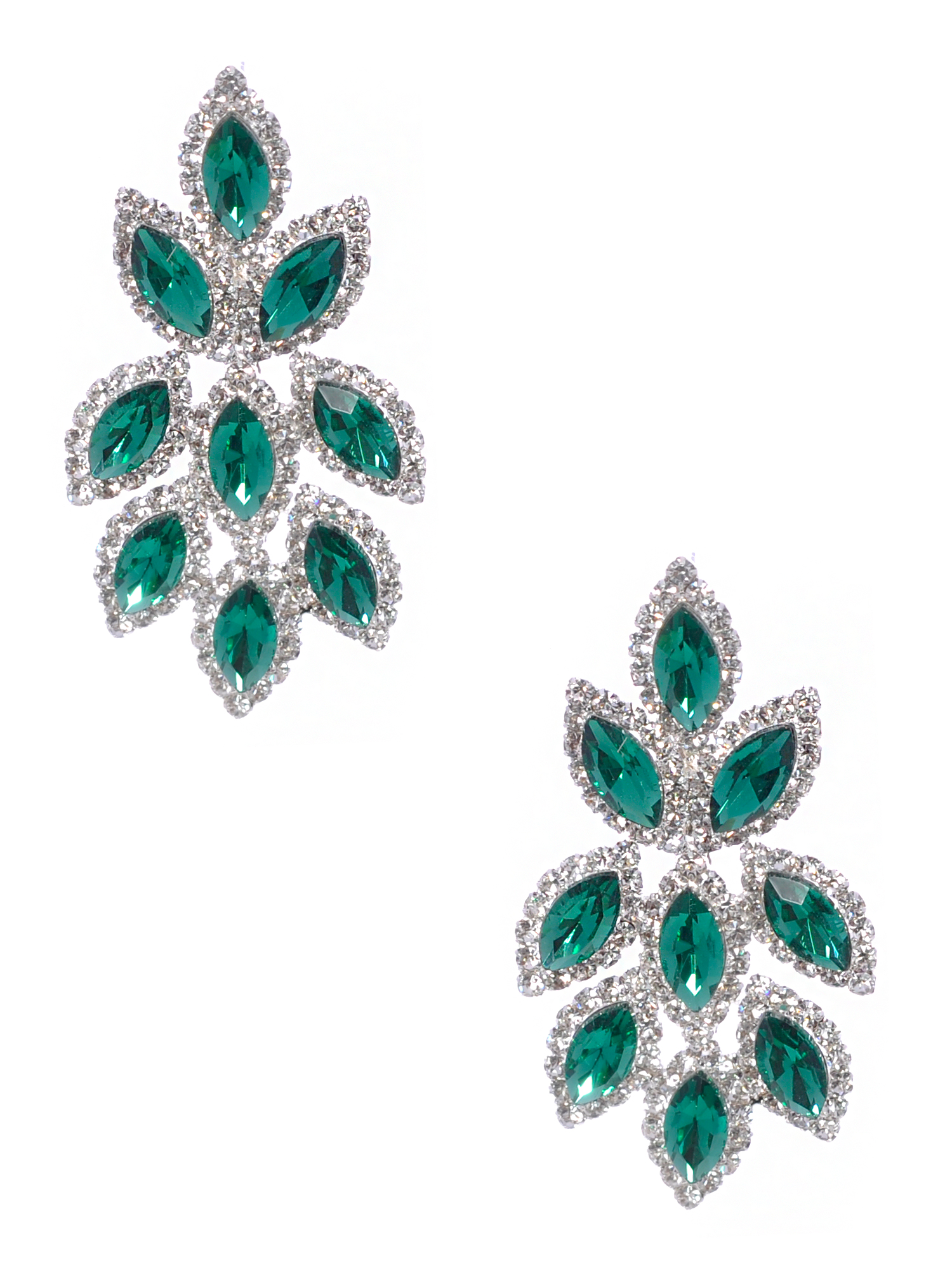(44011-105) Wedding Earrings Silver Plating Pear Stone Chandelier Drop Earrings