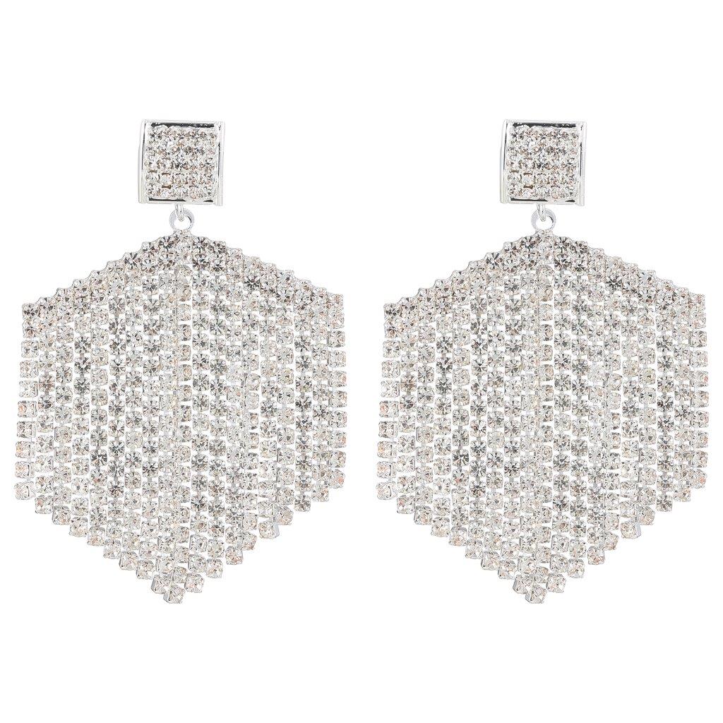 These dainty earrings feature sparkling crystals and rhinestones set in a silver-tone finish, creating a dazzling look that is perfect for any occasion. The multi-line dangle design adds a unique and eye-catching element that will make you stand out from the crowd.