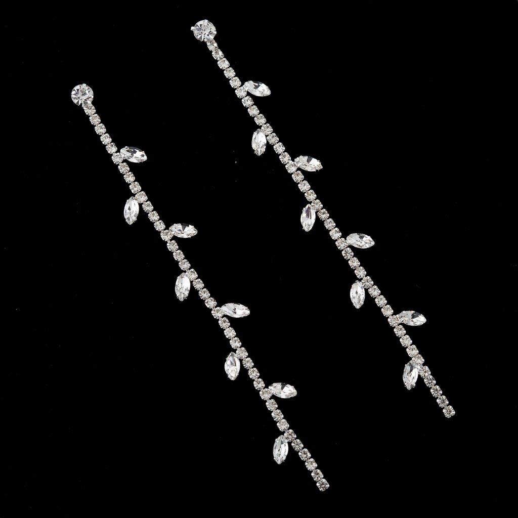 The stunning combination of crystal, rhinestone, and silver creates a mesmerizing allure that is sure to captivate anyone who lays eyes on it. The delicate long chain design adds a touch of elegance, making these earrings a must-have for any fashion-forward individual.