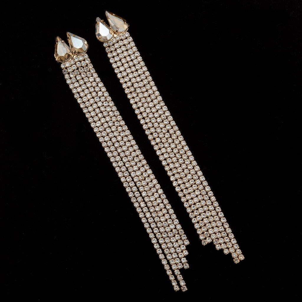 The combination of gold and Light Colorado Topaz creates a symphony of beauty that adds a touch of glamour to any ensemble. The rhinestone accents add a hint of sparkle, allowing you to shine like the star you are. Whether you’re dressing up for a night out or looking to elevate your everyday style, these earrings are the perfect accessory.