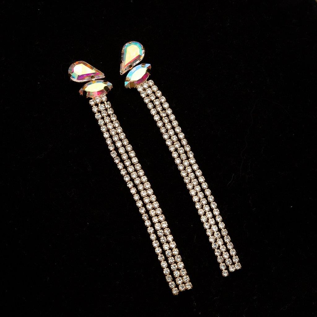 Elevate your style with our exquisite Gold Aurora Borealis Long Multi Chain Dangle Fashion Earrings. These stunning earrings are a perfect combination of elegance and glamour, designed to make you stand out from the crowd.