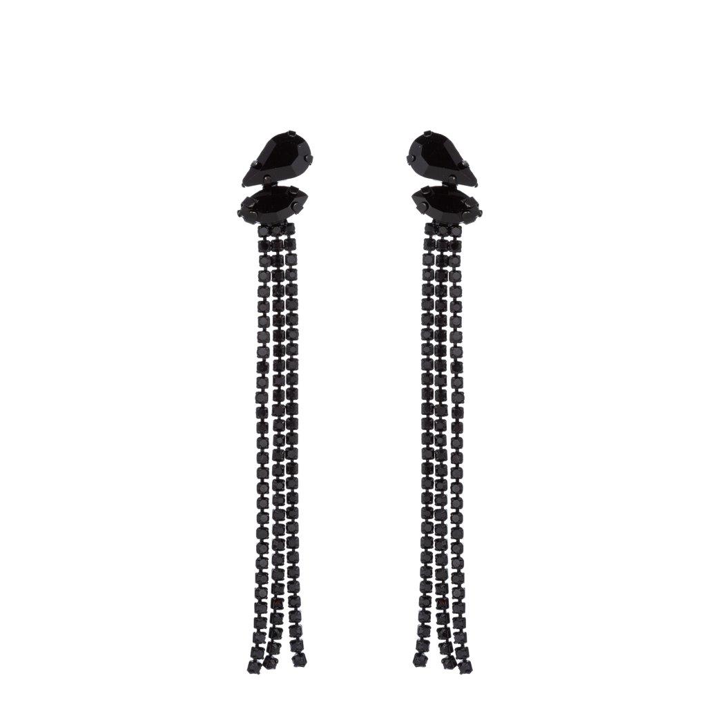 Crafted with utmost precision and attention to detail, these earrings feature a cascading arrangement of delicate black jet chains that gracefully sway with every movement, creating a mesmerizing effect. The combination of black and jet hues adds a touch of drama and sophistication to your look, making these earrings perfect for both formal occasions and adding a touch of glamour to your everyday ensemble.