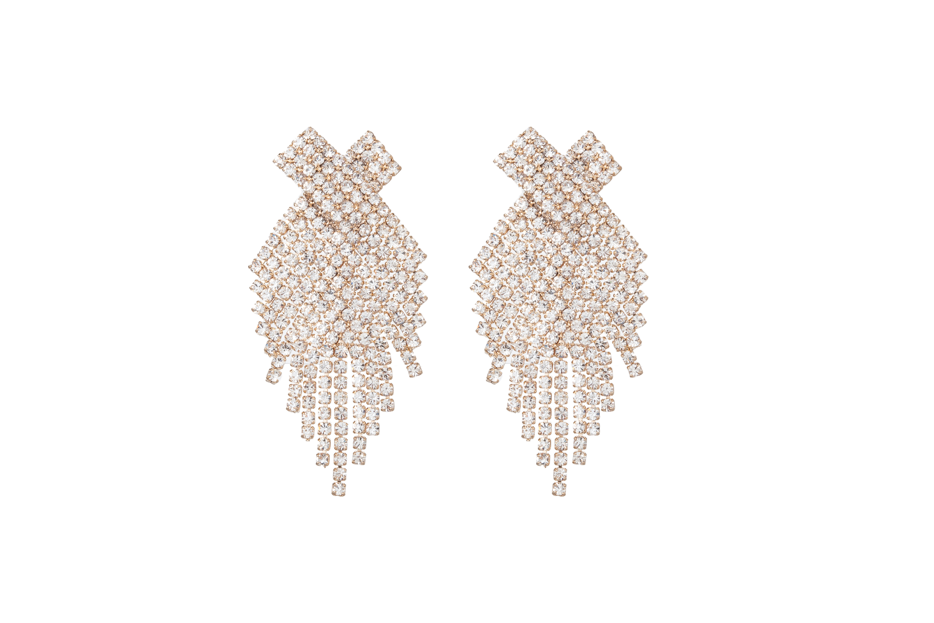 X Shape Gold Crystal Chandelier Earrings H 1.75” W 1”, Bridal, Prom Party, Special Occasions.