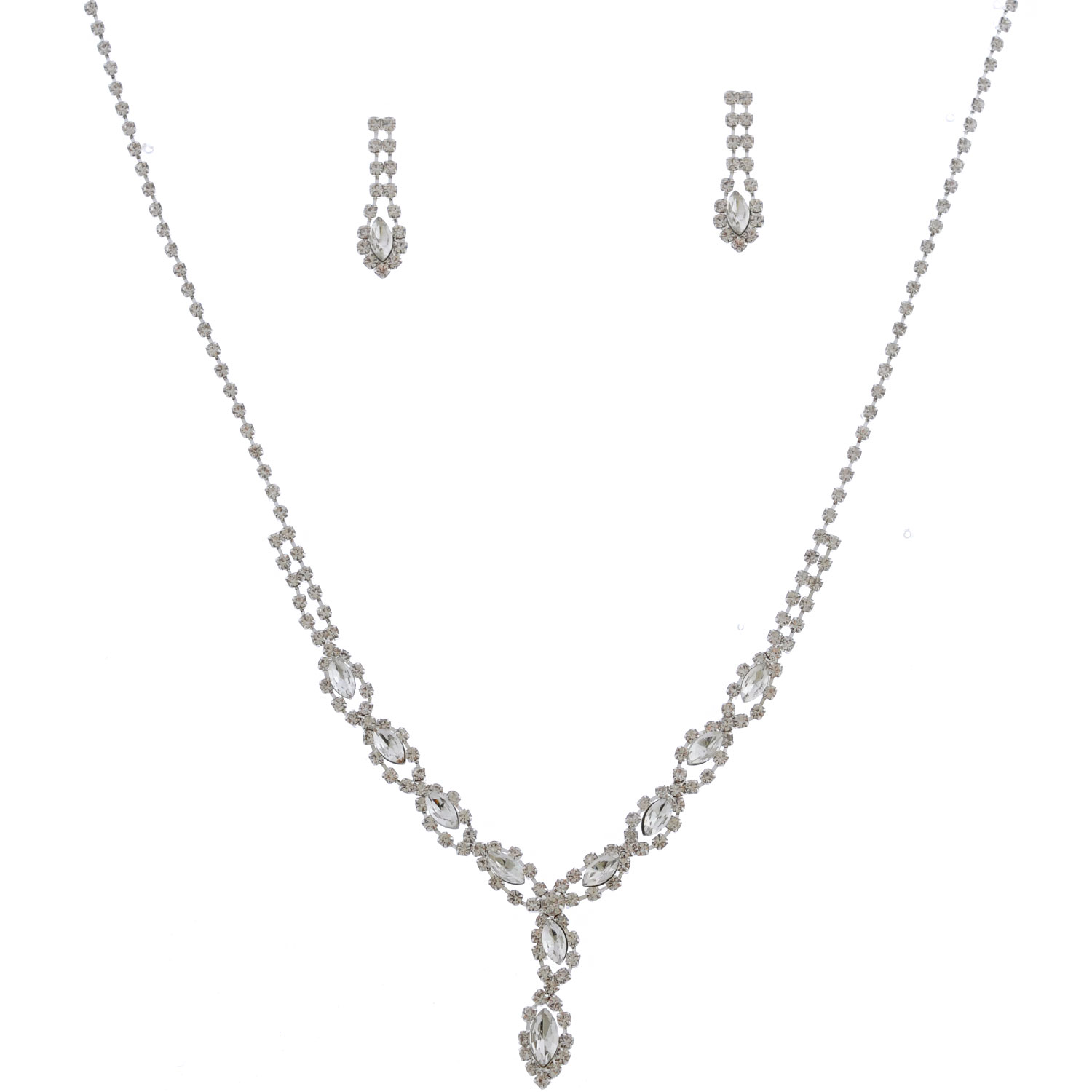 Fashion Jewelry Set Silver Plating Y Necklace Dangle Earrings Set