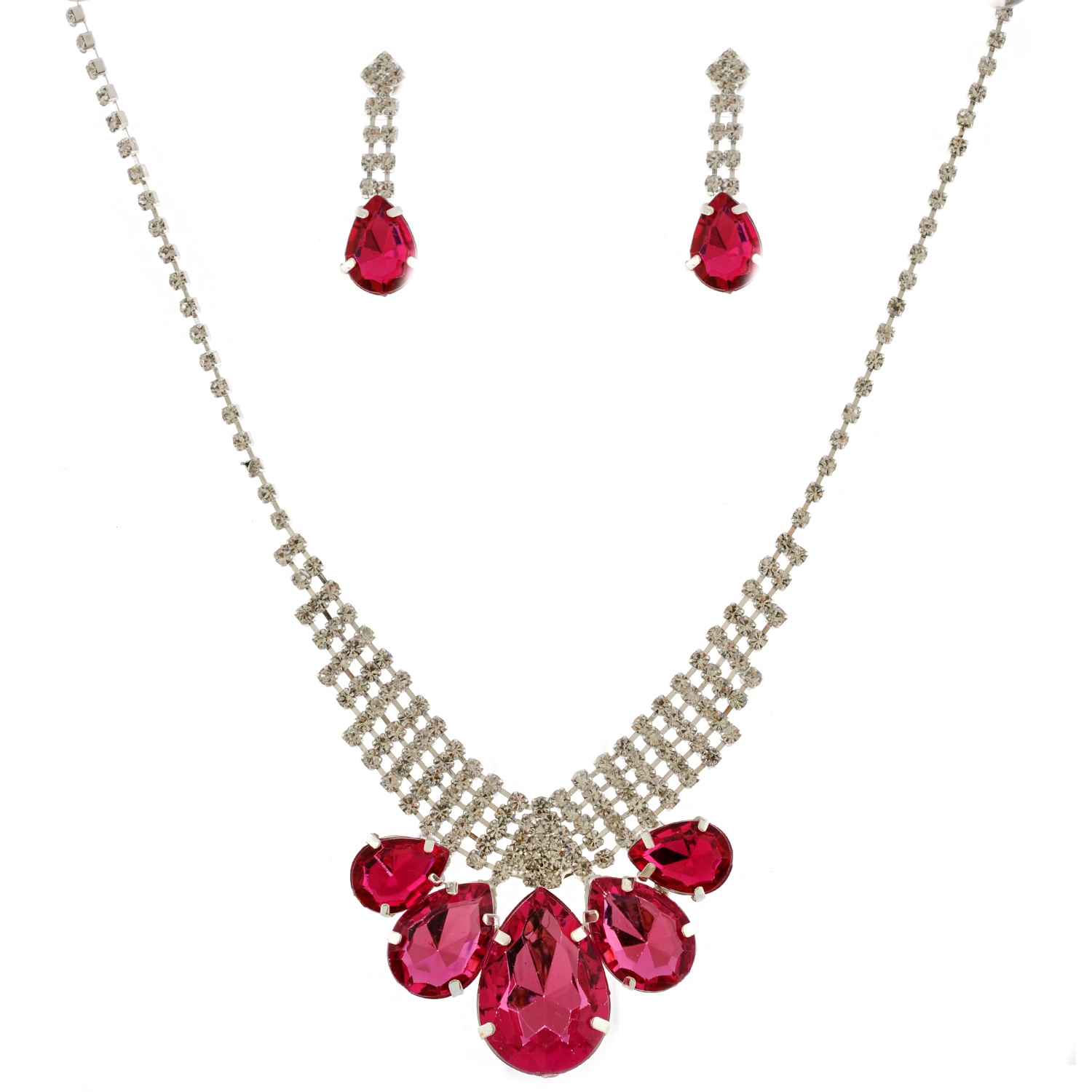 Fashion Jewelry Set Silver Plating Fuchsia Necklace Earrings Set