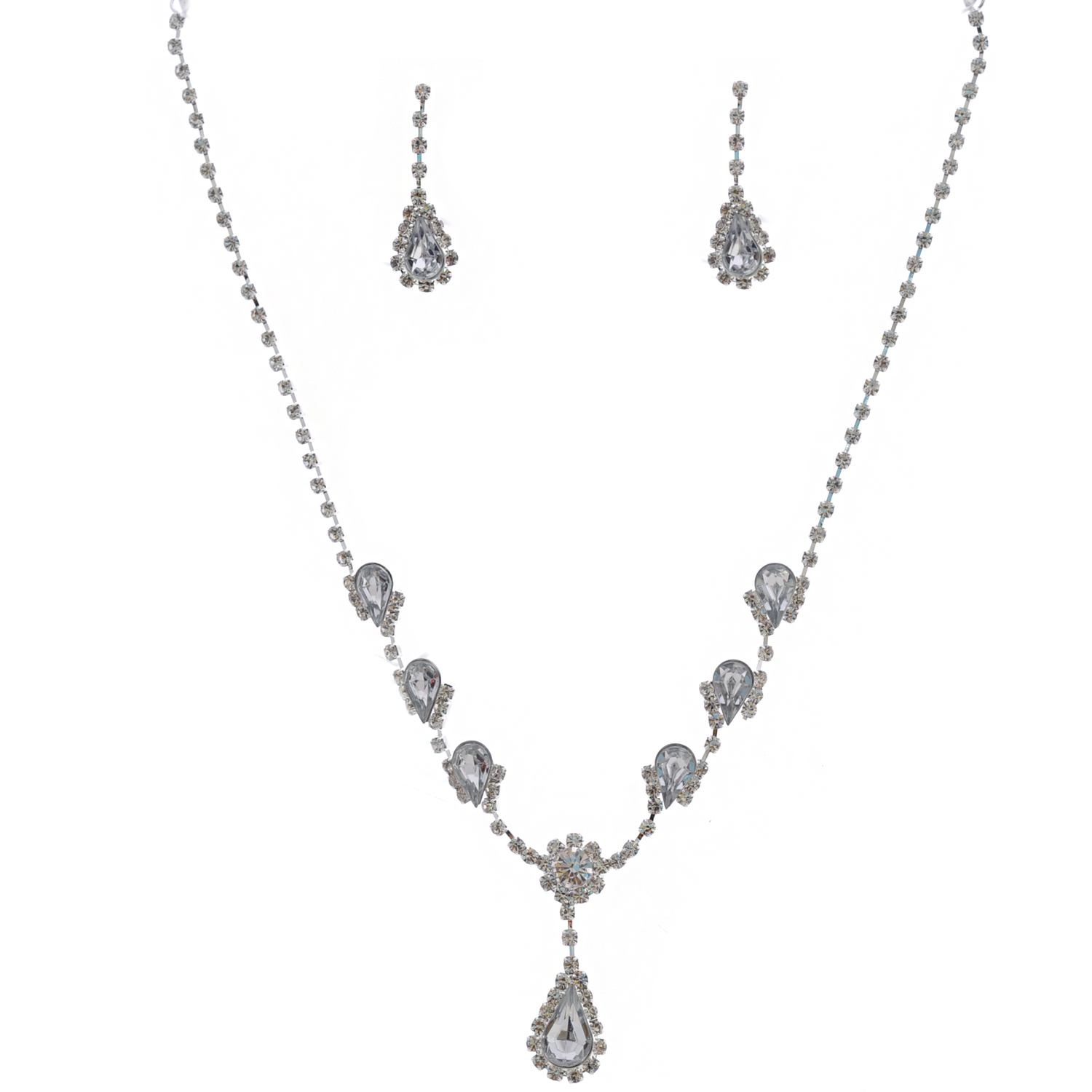 Introducing the dazzling Silver Crystal Teardrop Accent 13″ Necklace with Dangle 1″ Earrings Wedding Jewelry Set. Prepare to turn heads and steal the spotlight with this stunning necklace set that will make you feel like a true fashion queen.