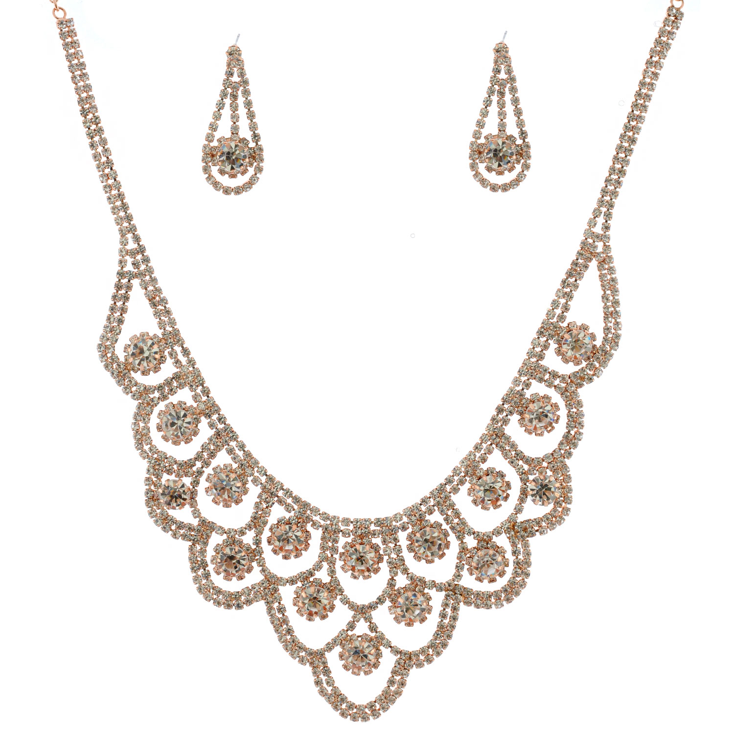 Jewelry Set Rose Gold Plating Necklace Dangle Earrings Set