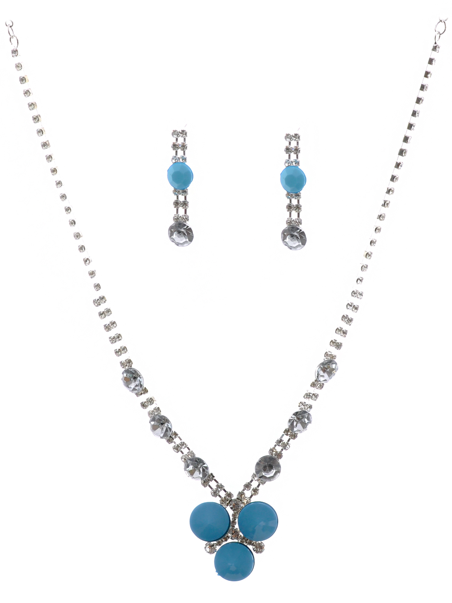 Fashion Jewelry Set Silver Plating Turquoise Opaque Stone Necklace Earrings Set