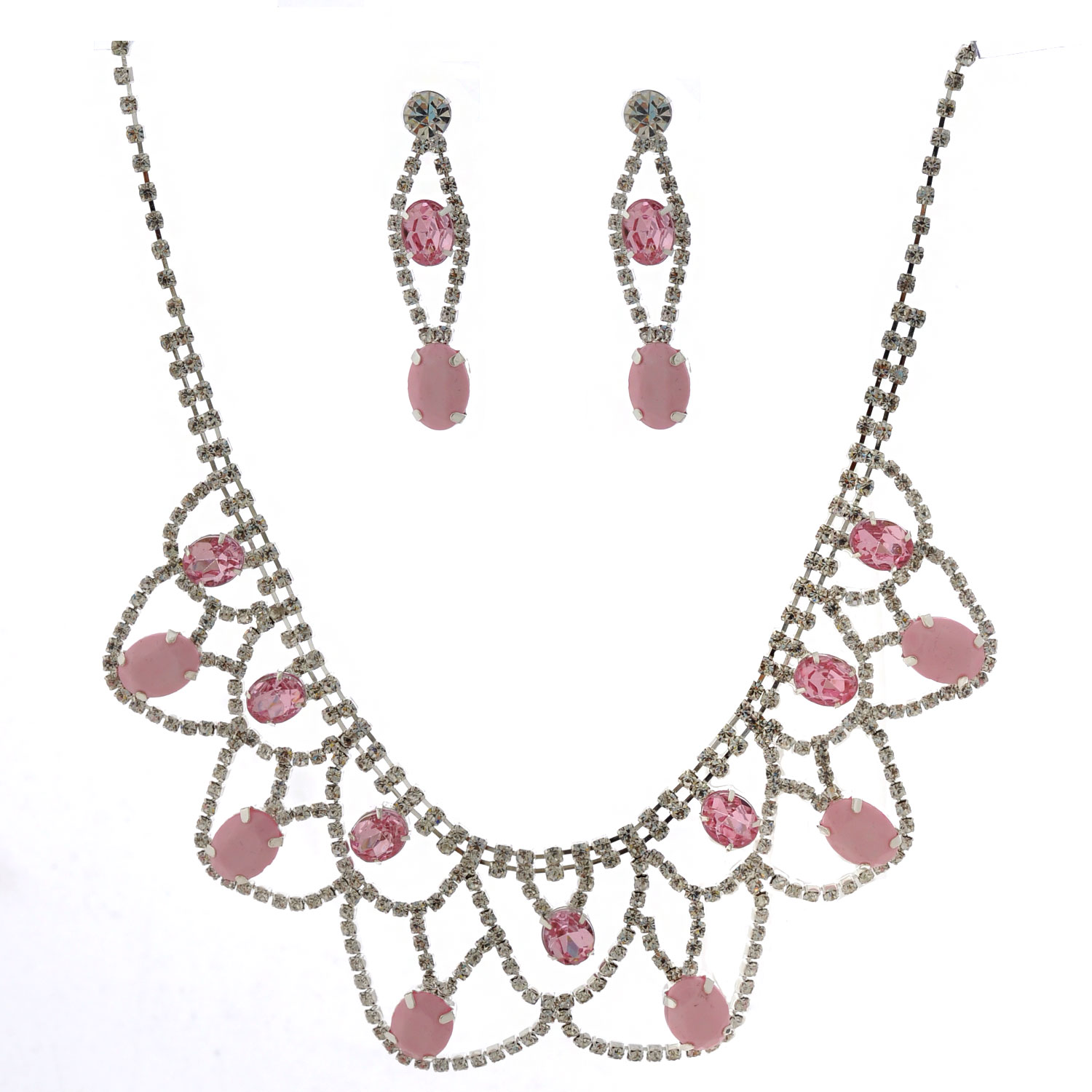 Light Rose Rhinestone Half Circle Oval Opaque Necklace Earrings Set