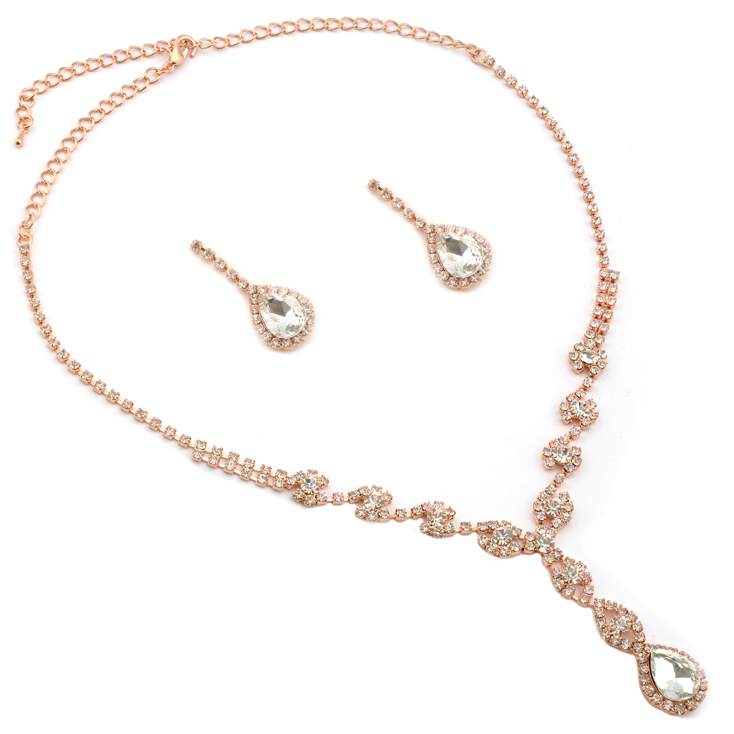 Wedding Jewelry Set Rose Gold Plating Dangle Necklace Earrings Set