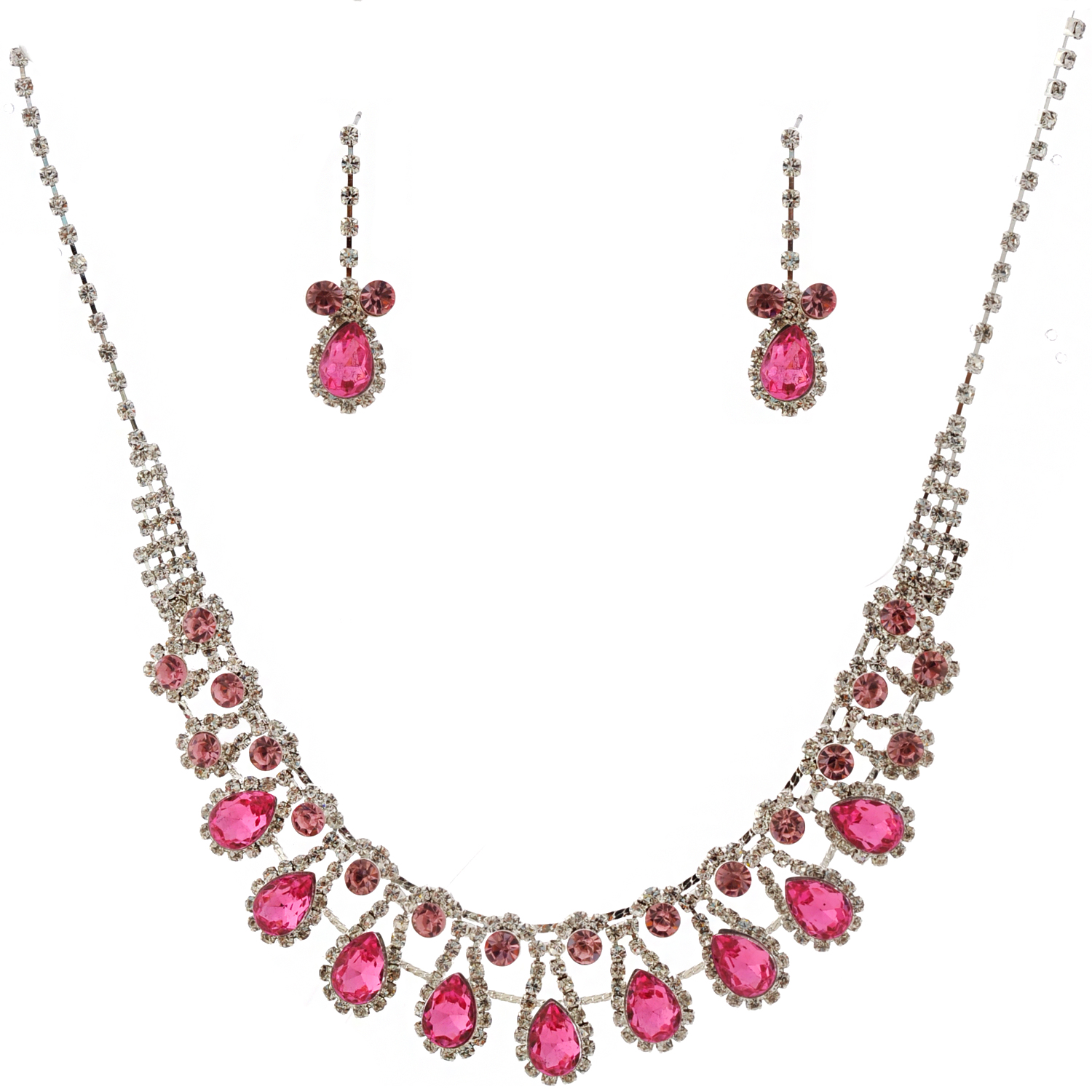 Wedding Jewelry Set Silver Light Rose Necklace Dangle Tear Drop Earrings Set