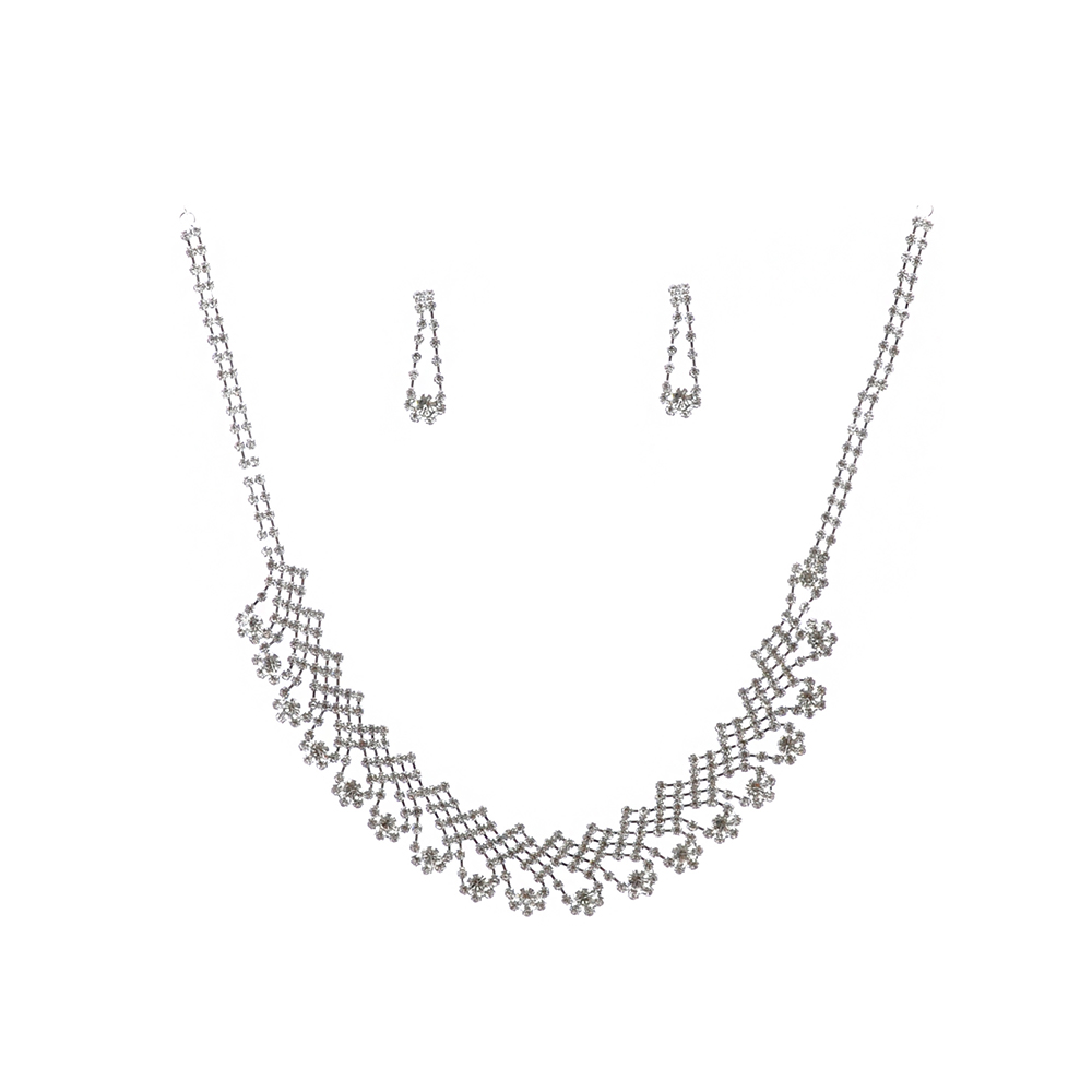 Wedding Jewelry Set Silver Plating Crystal Rhinestone Flower Leaf Necklace Earrings Set
