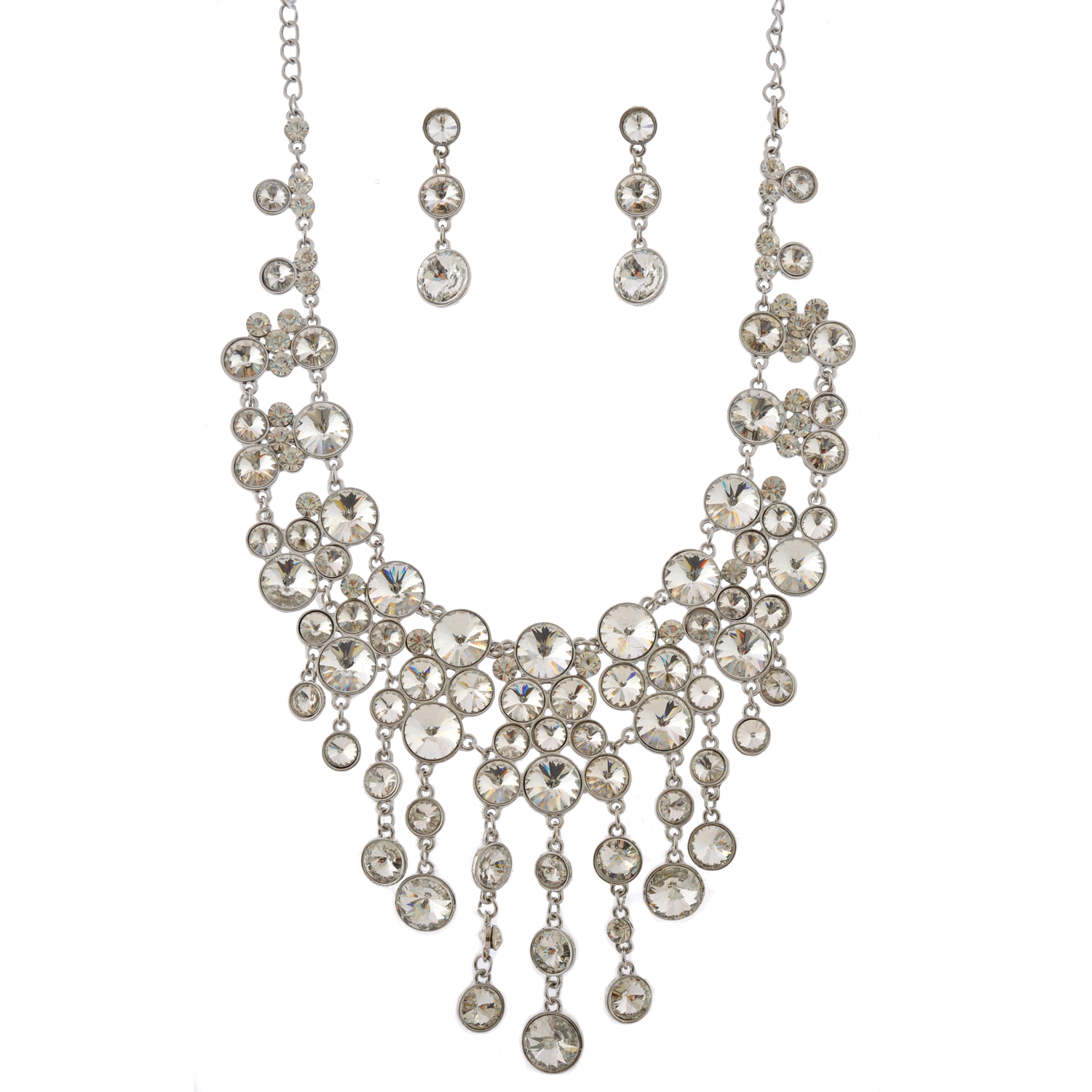 Wedding Jewelry Set Rhodium Crystal Necklace Earrings Set