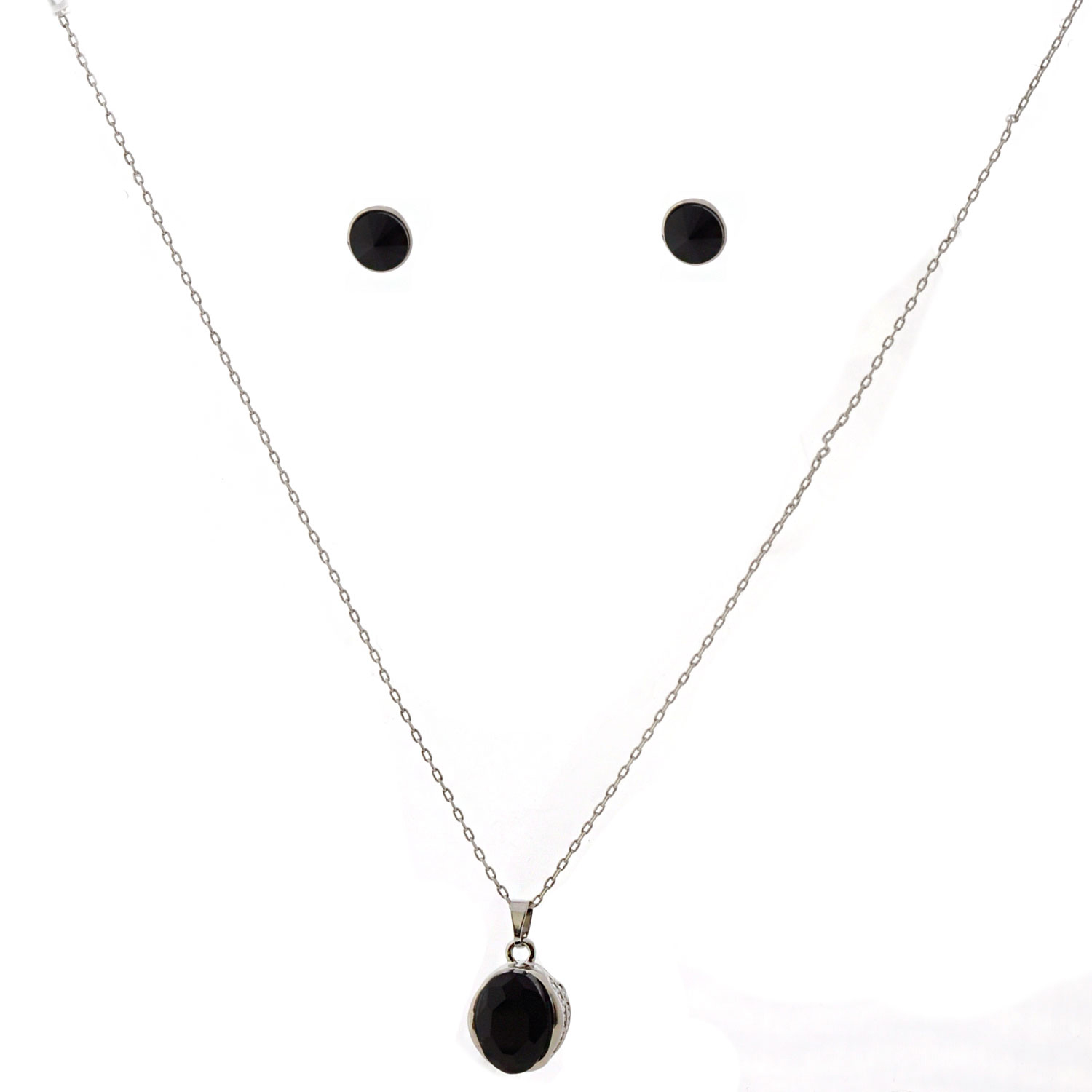 Rhodium Plating Jet Stud Earrings and Pendant Necklace Jewelry Set