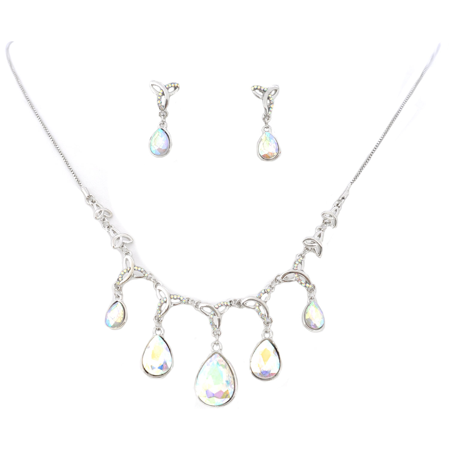 Wedding Jewelry Set Rhodium Aurora Borealis Necklace Earrings Set