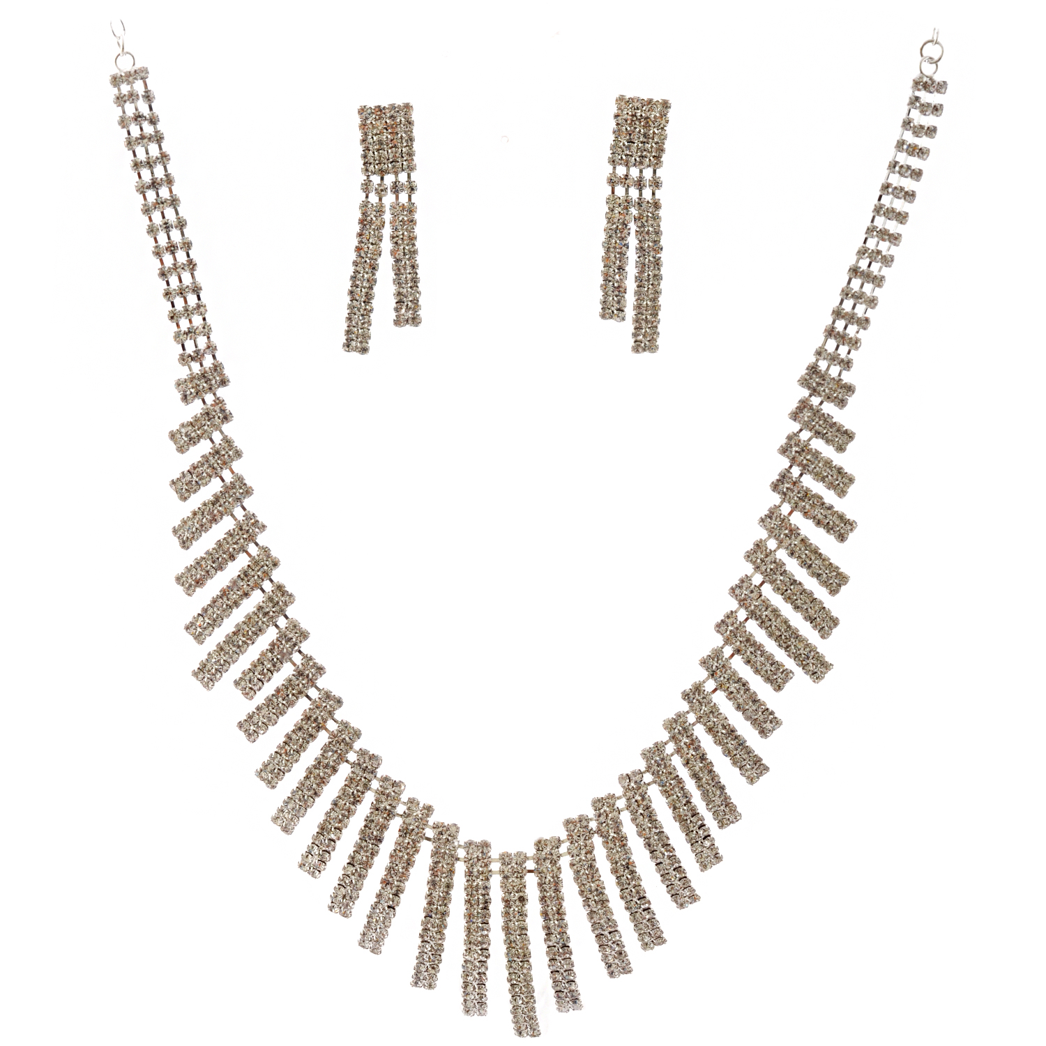 Wedding Jewelry Set Silver Crystal Bib Necklace Dangle Earrings Set