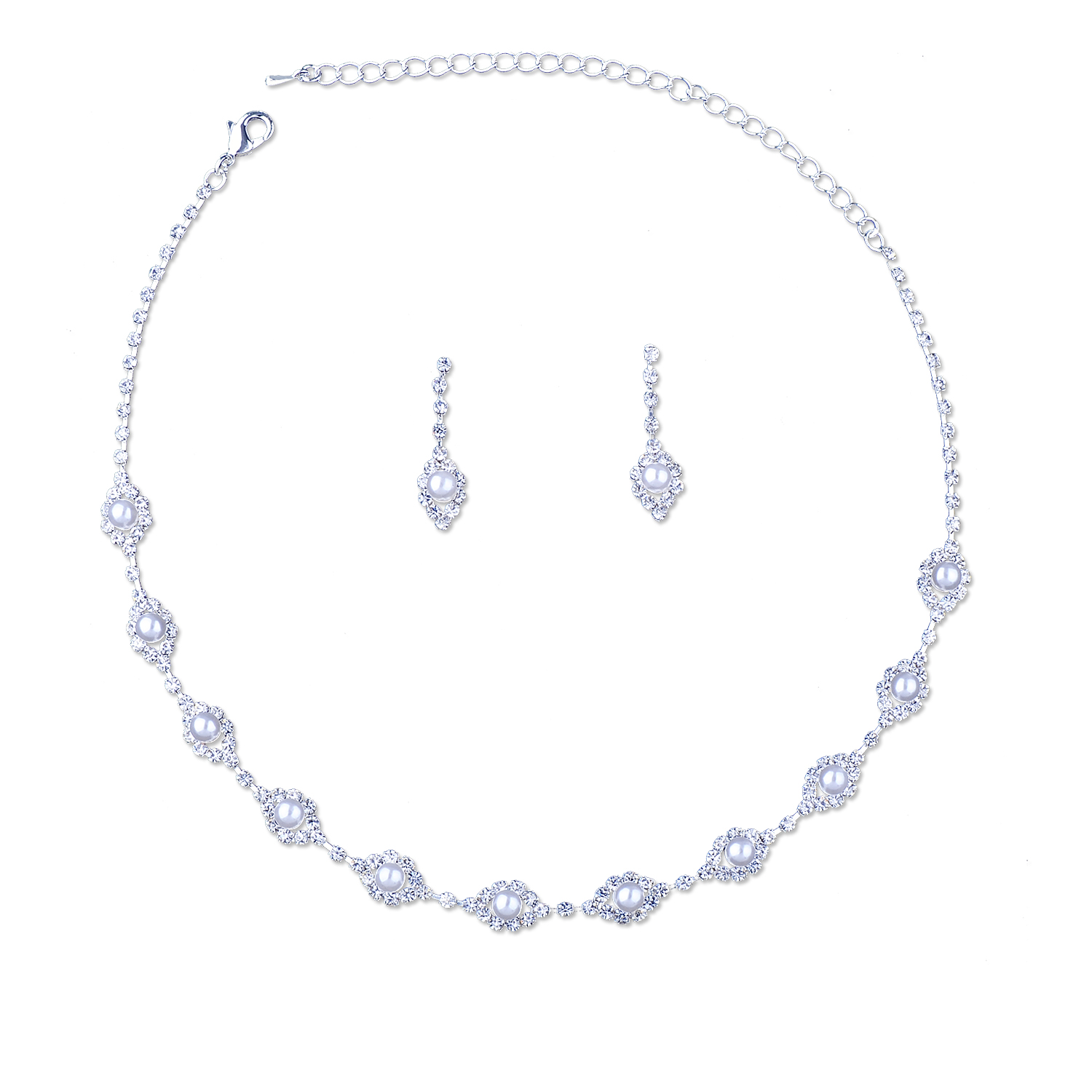 Bridal Jewelry Set For Wedding Simulated White Pearl Necklace Earrings Set For Wedding