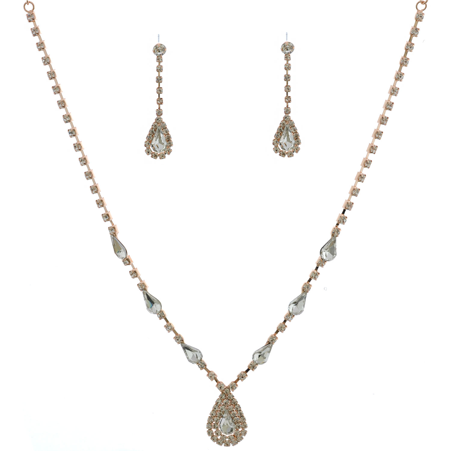 Fashion Jewelry Set Rose Gold Plating Necklace Dangle Earrings Set
