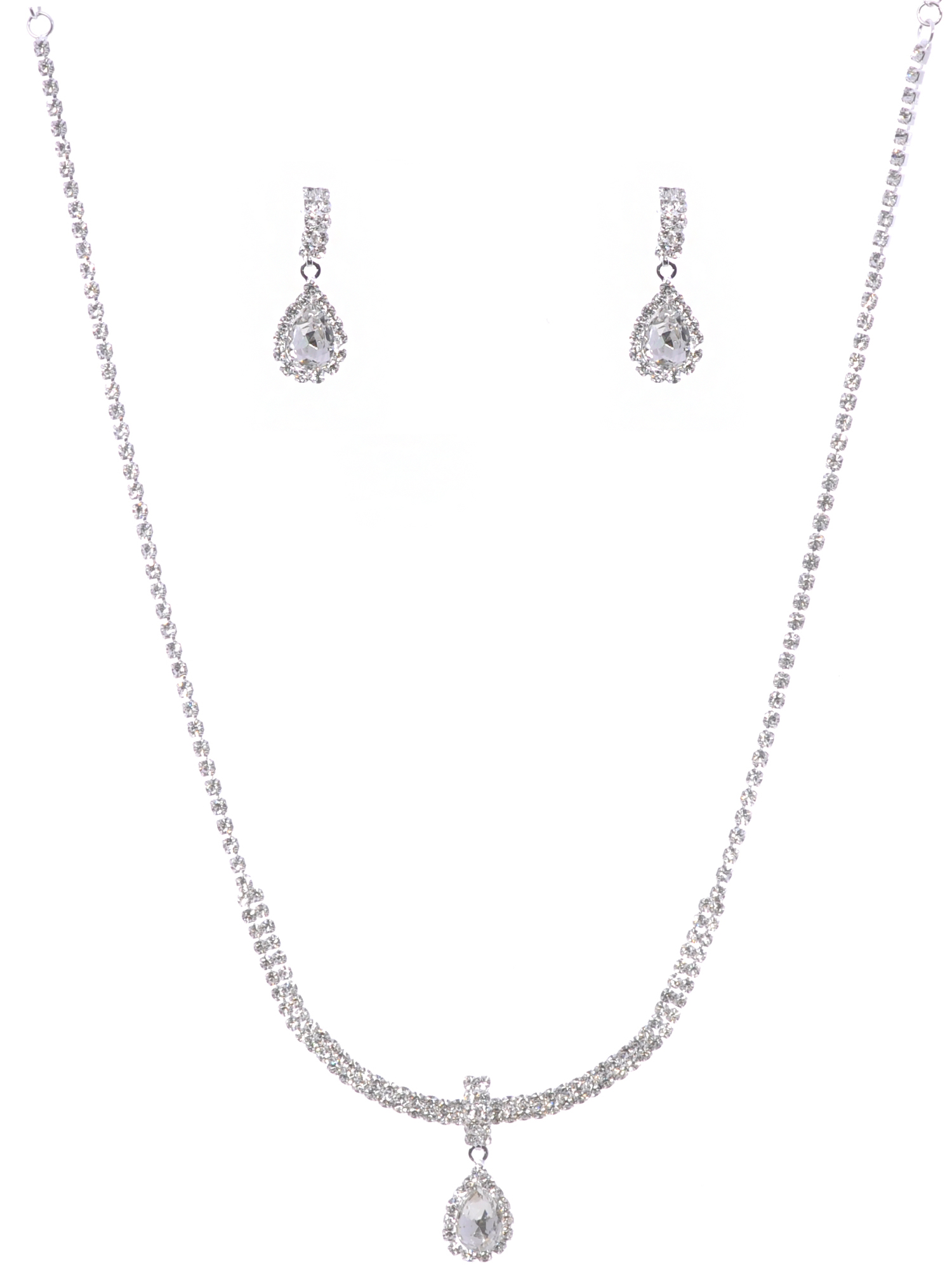(48721-100) Fashion Jewelry Set Silver Plating Bar Necklace Dangle Earrings Set