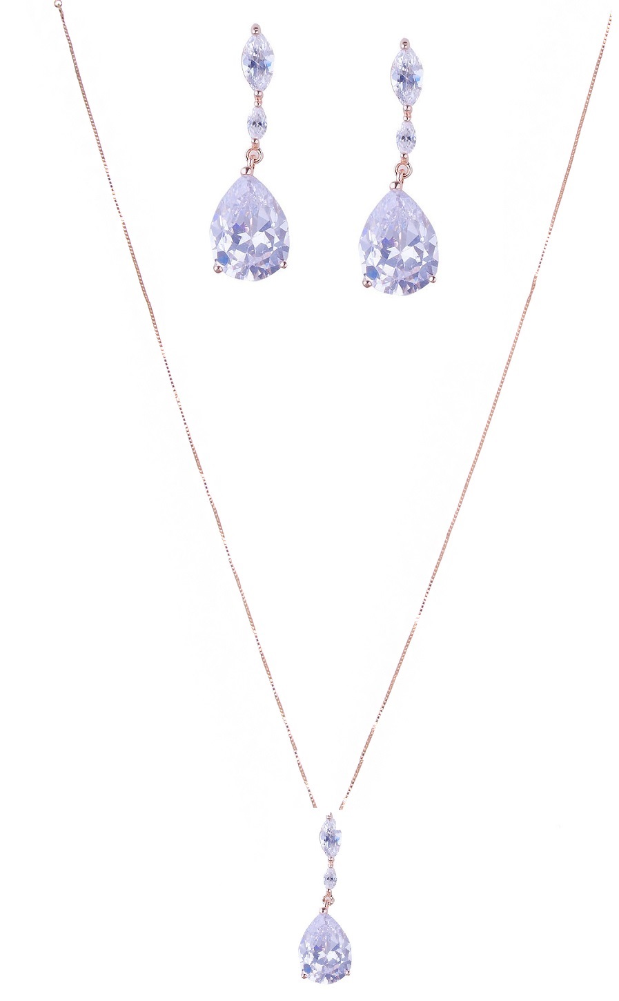 Rose Gold Crystal Tear Er H1.5”Nk .16”+