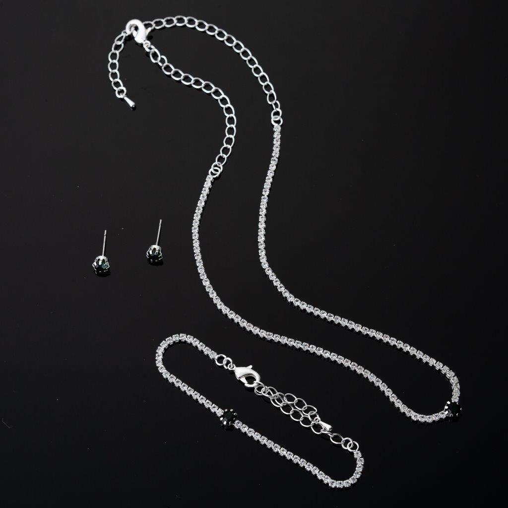 Get ready to dazzle and sparkle with our enchanting 3 pcs Silver Emerald Green Single Strand Accent Necklace with Earrings and Bracelet Fashion Jewelry Set! This mesmerizing set is perfect for all the glamorous occasions and will make heads turn wherever you go.
