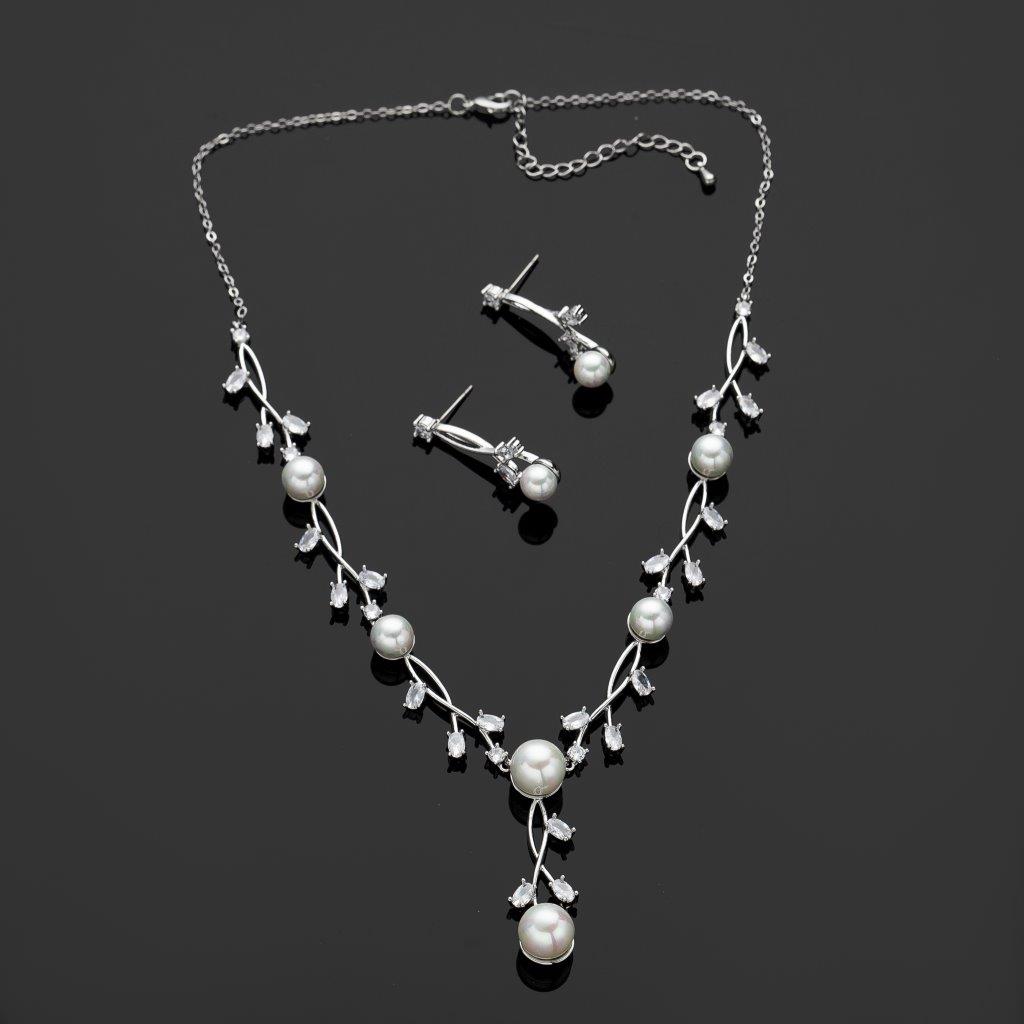 - Stunning silver pearl necklace set