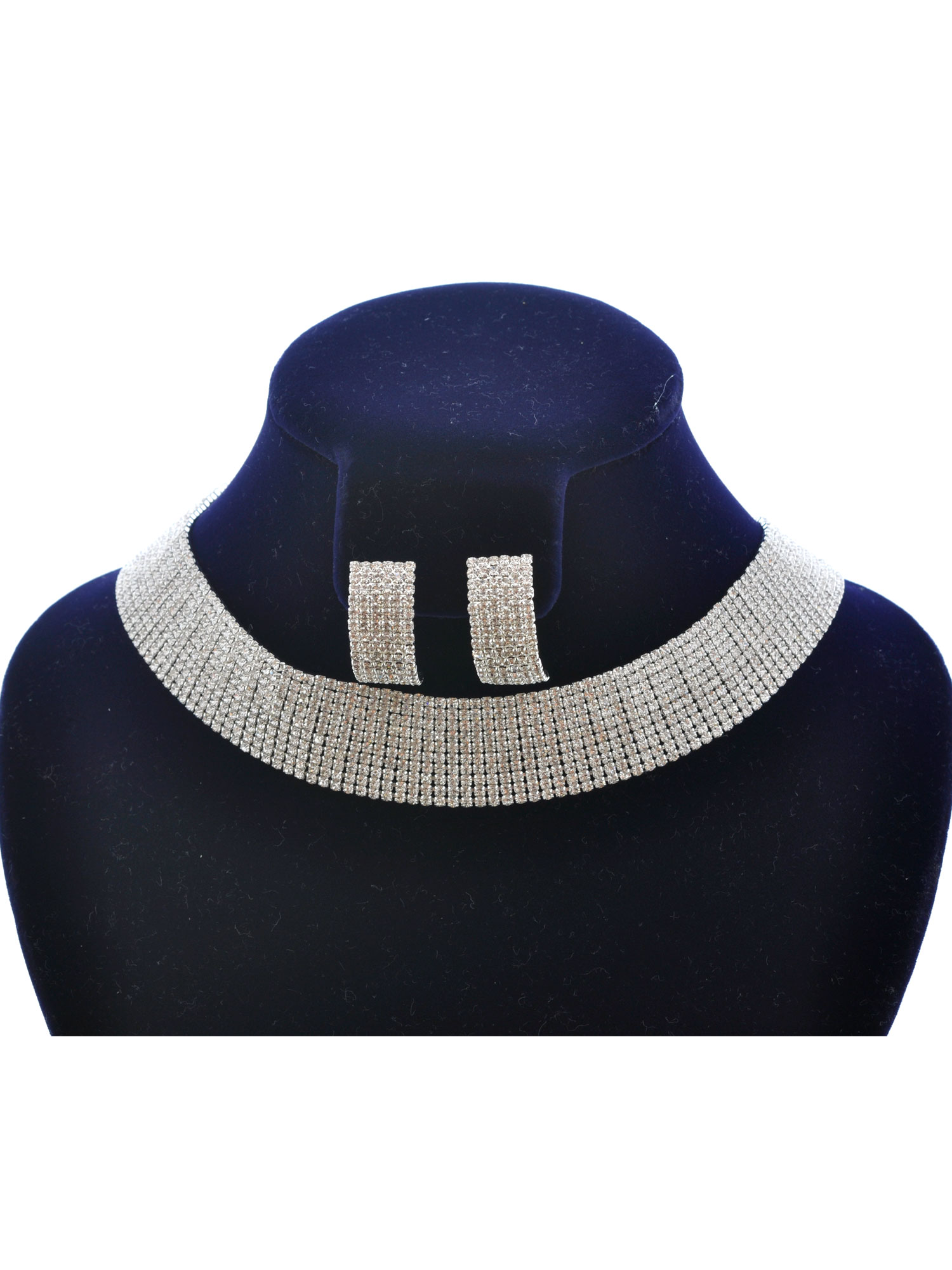 Fashion Jewelry Set Silver Plating Line Choker Necklace Earrings Set