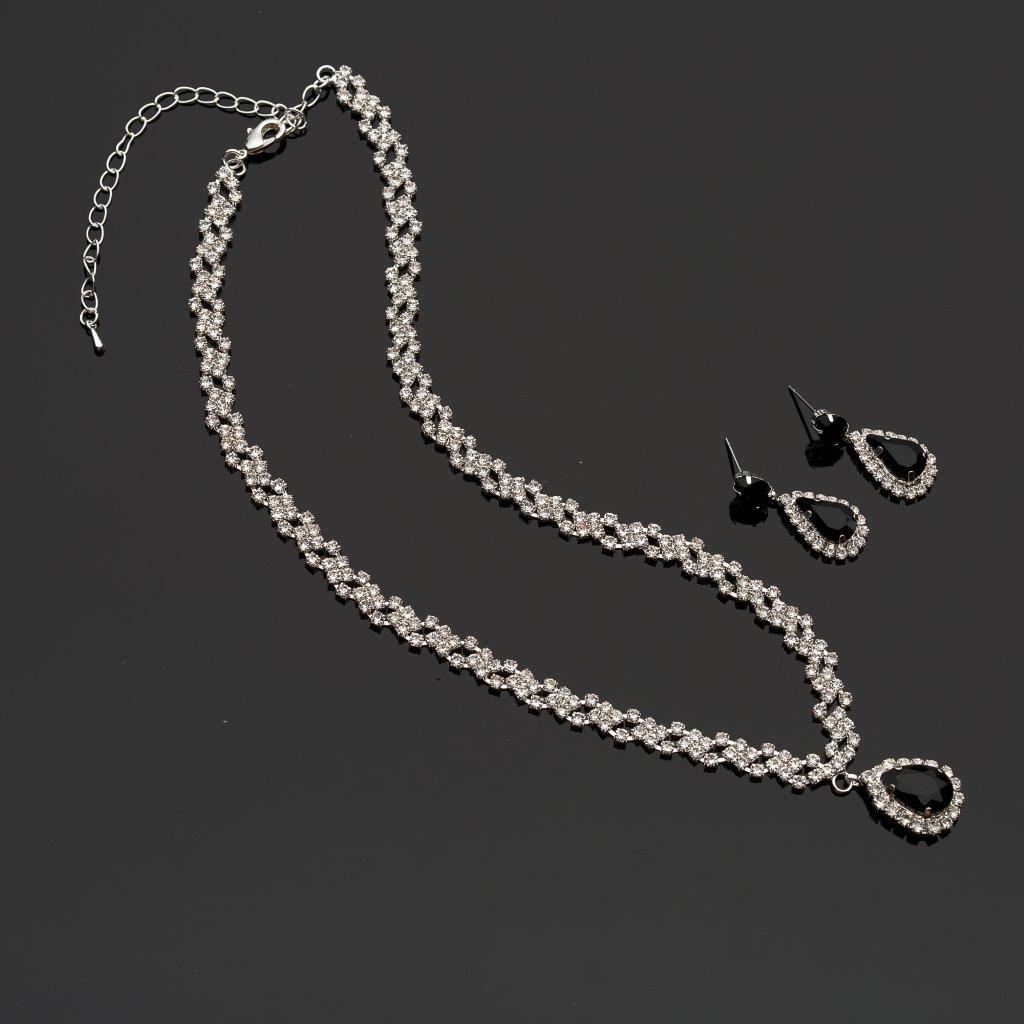 Featuring a delicate teardrop pendant made from shimmering silver, this necklace is a true statement piece. The pendant is beautifully adorned with sparkling crystal and jet stones, adding an air of elegance and sophistication to any outfit.