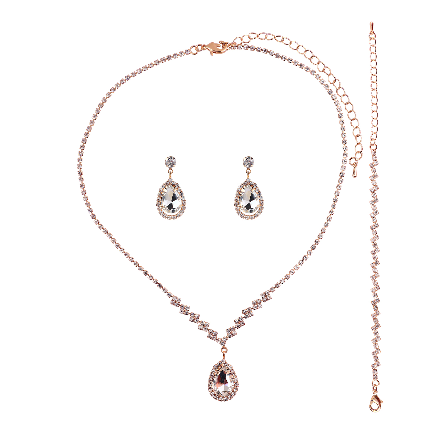 3pcs Set NK16+4 Br 7+2 E 2”.3pcs Rhinestone Decor Jewelry Set bridal, prom special occasions