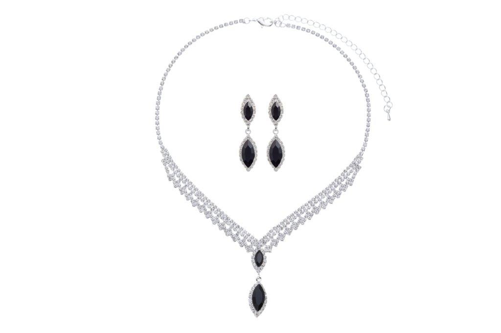 If you want to make a statement and add a touch of glamour to any outfit, look no further than our Silver Jet Marquise V Neck Fashion Jewelry Set! This stunning jewelry set is the perfect accessory for any occasion, whether you’re heading to a special event or simply want to add some sparkle to your everyday look.