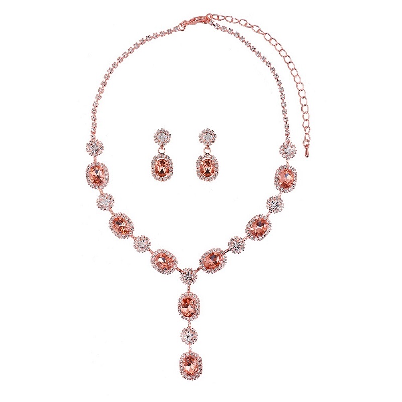 Get ready to add some sparkle and shine to your look with our Rose Gold Light Peach Oval Y Neck Fashion Jewelry Set. This gorgeous set features a stunning combination of rose gold, light peach, and rhinestone crystals that will elevate any outfit to the next level.