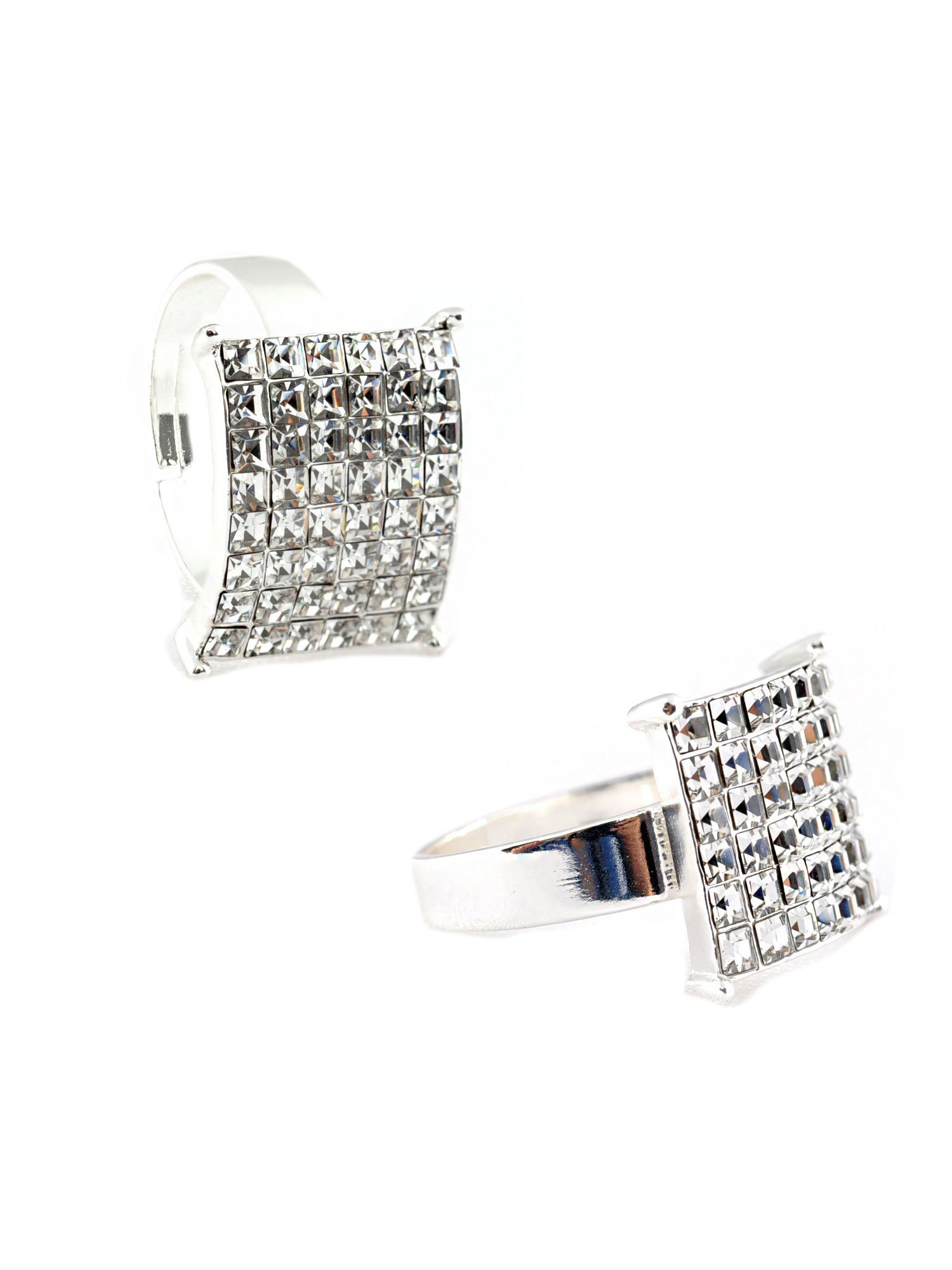 Square Cubic Zirconia Silver Adjustable Ring