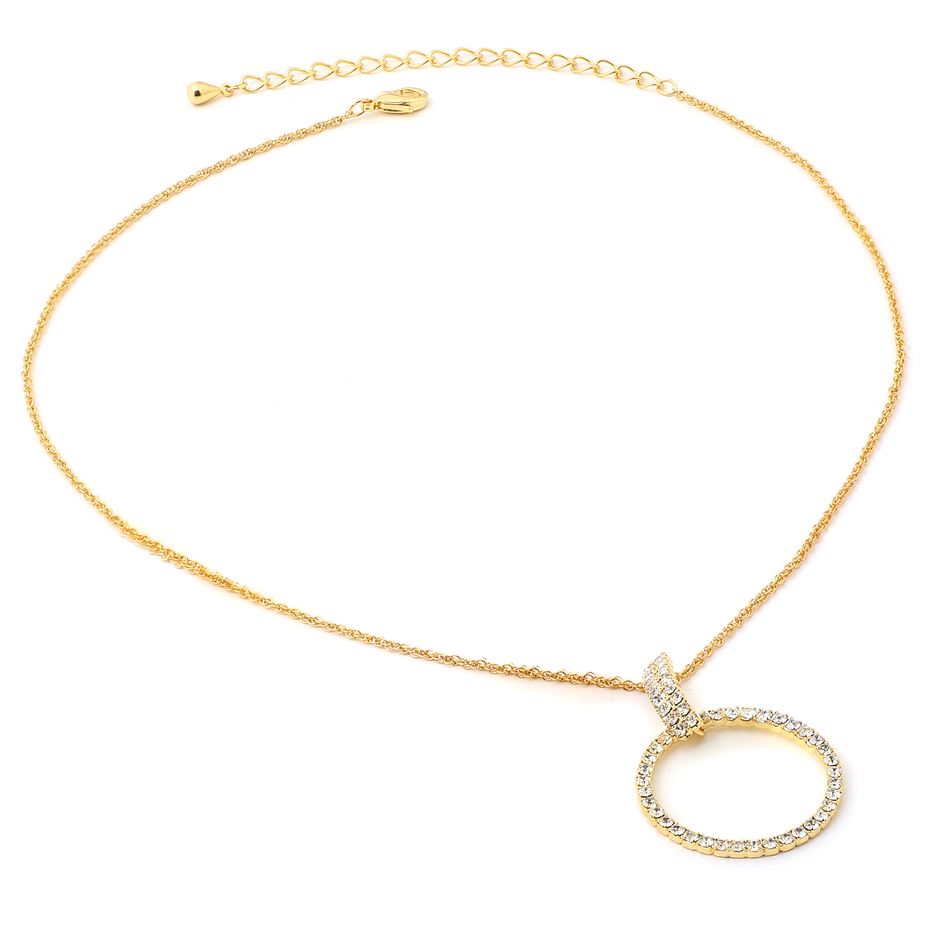 Gold Twist Wire Chain with Dangle Crystal Rhinestone Circle Necklace